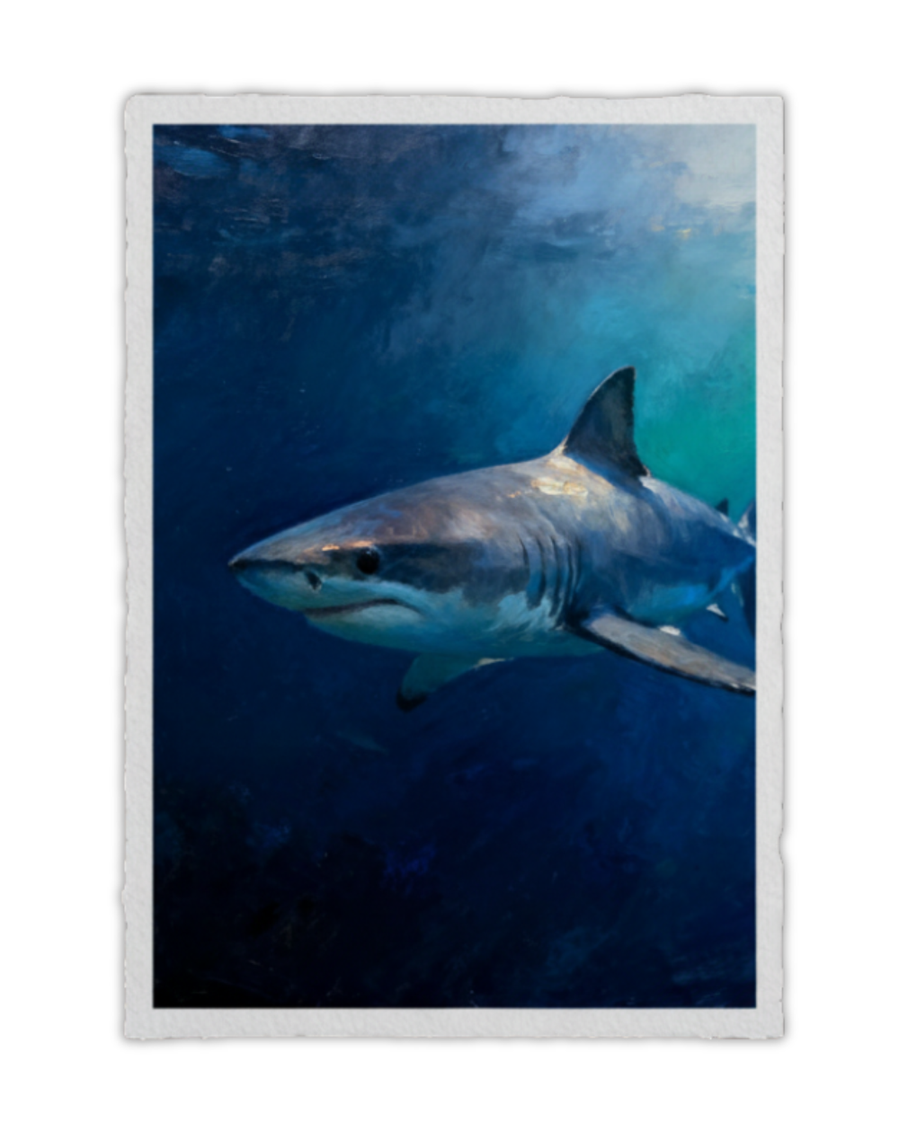 The shark moves through open water with absolute clarity. No hesitation. No excess motion. Every line serves a purpose. The power here is controlled, quiet, and intentional.