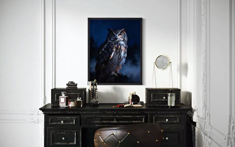 Midnight Guardian brings a sense of calm vigilance into a space. It does not demand attention, but it always feels present.