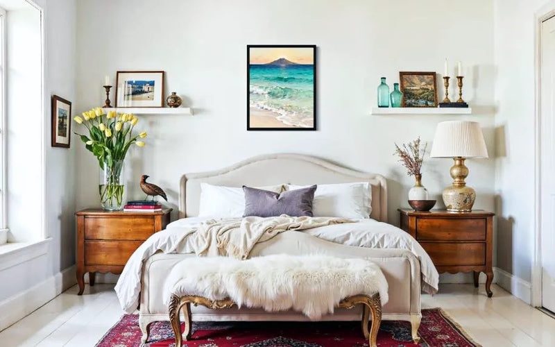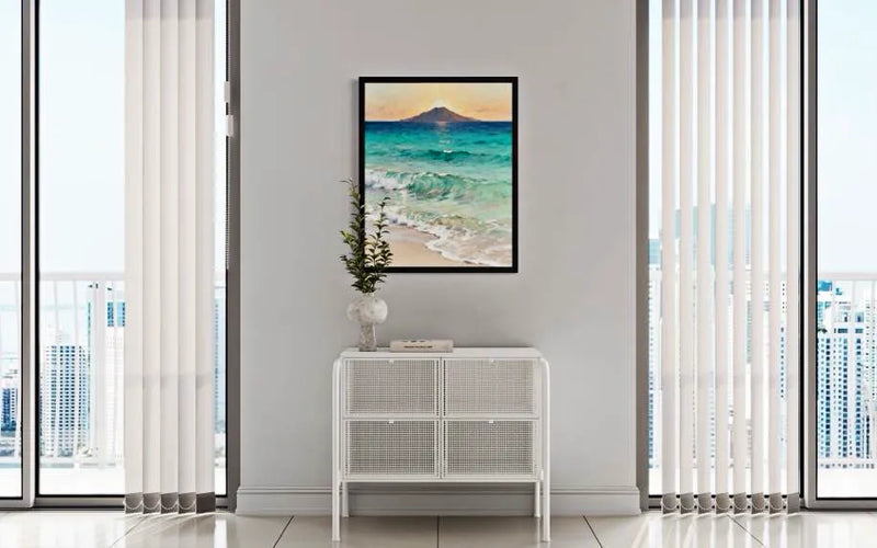 Turquoise Shoreline brings light into a space without overwhelming it. It feels clean, peaceful, and quietly expansive.
